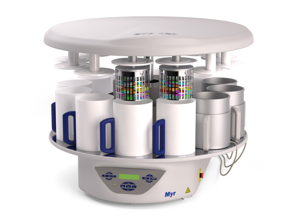 El Procesador de tejidos STP 120 de Myr ha sido desarrollado para satisfacer las necesidades de cualquier laboratorio. Su avanzada tecnología y su método de procesamiento sin parangón hacen del STP 120 el procesador de carrusel más exitoso del mercado. Las más de 3.000 unidades instaladas en todo el mundo dan fe de ello.